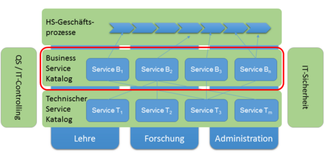 Die Business Services  sind das Herzstück der Benutzer⇔Campus IT Beziehung. Im Business Service Katalog finden sich alle Services, die für die Nutzer direkt sichtbar und nutzbar sind. Sie sind allgemeinverständlich und aggregiert beschrieben, so dass ein unmittelbarer Bezug zu den persönlichen (Geschäfts-) prozessen hergestellt und der Mehrwert erkannt werden kann. Dieser kann entweder die eigene Leistung oder die des eigenen Bereichs verbessern oder Einschränkungen aufheben. Die Business Services stehen den in den jeweiligen Beschreibungen definierten Benutzergruppen hochschulweit zur Verfügung. Gemäß den IT-Grundsätzen der Hochschule müssen die Business Services verwendet werden. Es darf nur in begründeten und genehmigten Ausnahmefällen weitere, gleichartige Angebote an anderer Stelle geben.