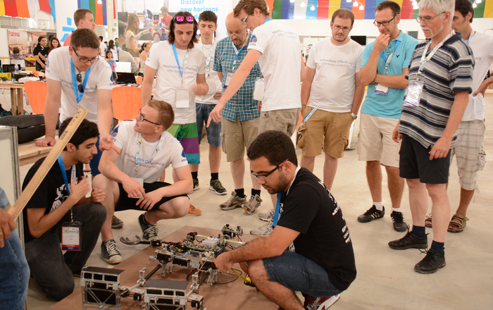 Tag 1 beim RoboCup: Noch beschnuppern sich die Teams, die beim RoboCup, der WM für fußballspielende Roboter, gegeneinander antreten.