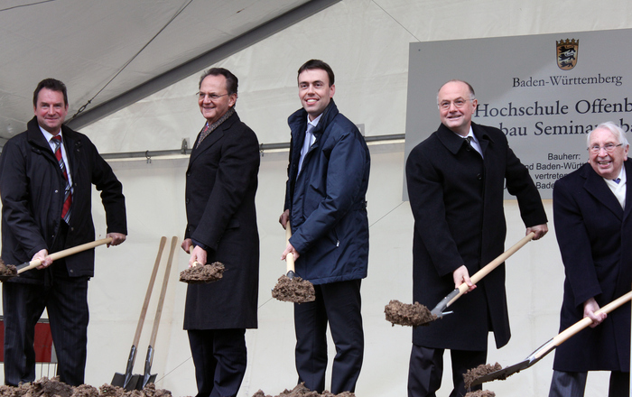 Der Bau kann beginnen: Mit einem symbolischen Spatenstich hat die Hochschule Offenburg im Beisein des baden-württembergischen…