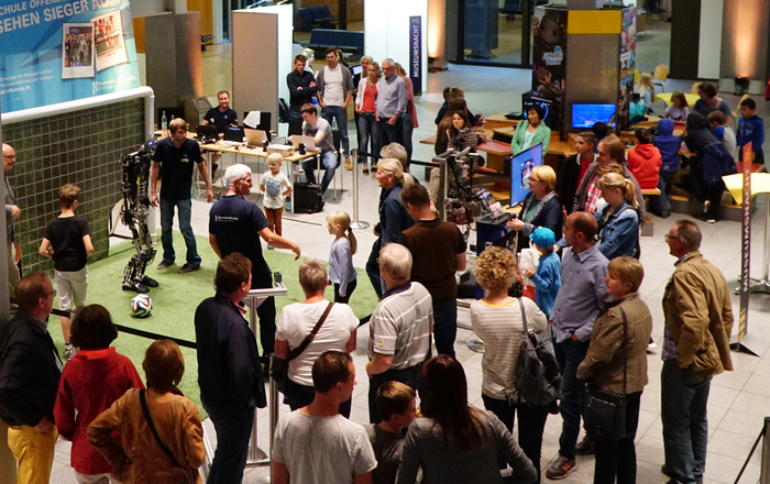 Das Vorgängermodell von Roboter Sweaty, dem amtierenden Vizeweltmeister im Roboterfußball, wird ab Herbst in Paderborn zu sehen sein.