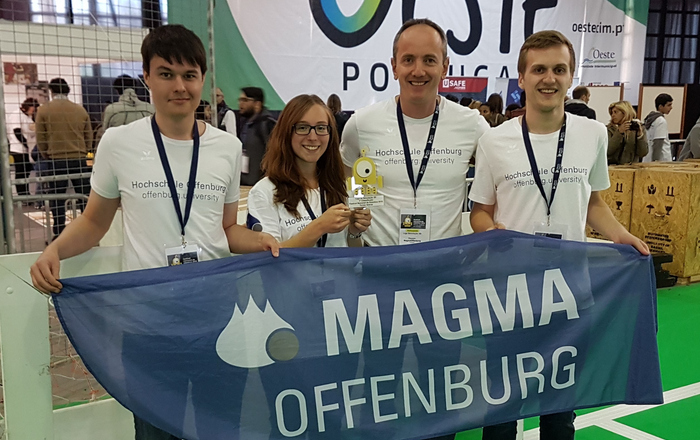 Das Team Magma der Hochschule Offenburg hat das Roboterfußball-Turnier der 3D-Simulationsliga auf der Robotica in Portugal gewonnen.