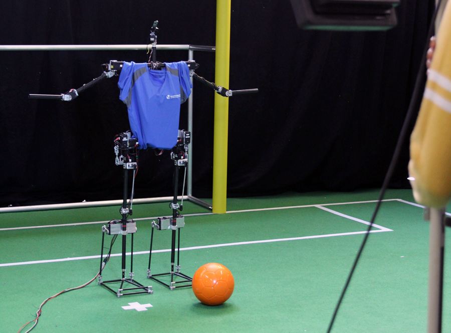 Eine Premiere ist die WM-Teilnahme von Roboter "Sweaty". "Er ist weltweit der erste Roboter, der seine Motoren durch Verdunstung kühlt: er schwitzt", berichtet Teamleiter Professor Ulrich Hochberg nicht ohne Stolz. Und auch sonst unterscheidet er sich deutlich von seinen Kontrahenten: Die Motoren sitzen nicht, wie sonst bei Robotern üblich, in den Gelenken, sondern bewegen - ähnlich wie beim Menschen - über "Verlängerungen" die Beine. "Dadurch lassen sich die Kräfte der Motoren optimal dosieren, ohne dass das Gewicht des ganzen Roboters auf den Motoren und ihren Getrieben lastet", so Hochberg.