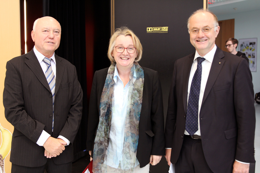So gab Theresia Bauer einen Überblick über das weite Feld der Digitalisierung und stellte die E-Science-Strategie des Landes vor, in der es um Forschungsdatenmanagement geht, um öffentlich zugängliche Forschungsergebnisse, um Lizensierung, Datenschutz und um Höchstleistungsrechner . "Wir unternehmen all diese Anstrengungen, weil wir überzeugt sind, dass Digitalisierung keine Bedrohung, sondern eine enorme Chance ist - vor allem für die Wissenschaft", so Bauer. Dabei sei der Vorteil der Hochschulen im Land, dass sie in besonderer Weise frei agieren können, dass sie sich auch Fragen zuwenden können, bei denen am Ende auch etwas völlig anderes herauskommen könne, als erwartet. Sie appellierte an die anwesenden Professoren, Dozenten und Studierenden: "Nutzen Sie Ihre Freiheit, nutzen Sie Ihre Neugierde, machen Sie Entdeckungen, mit denen wir unsere Probleme von morgen lösen können." Schließlich werde an der Hochschule Offenburg in den vier Fakultäten in den Themenfeldern Technik, Wirtschaft und Medien in den Kernbereichen der Digitalisierung geforscht und gelehrt.