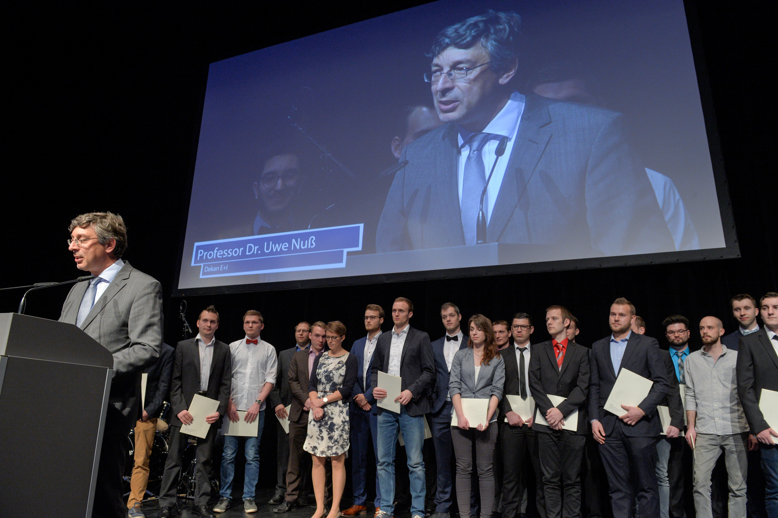 „Mit dem heutigen Tag haben Sie hochaktuelles Wissen und das praktische Rüstzeug für einen guten Berufseinstieg erworben“, sagte Gastredner Dr.-Ing. Thomas Kathöfer, Hauptgeschäftsführer der Arbeitsgemeinschaft industrieller Forschungsvereinigungen (AiF). Thomas Kathöfer betonte die Bedeutung der Kooperation zwischen Hochschulen und mittelständischer Wirtschaft für die Leistungsfähigkeit des Innovationssystems. Es sei ihm daher eine Ehre und Freude, den Absolventinnen und Absolventen der Hochschule Offenburg zu gratulieren.