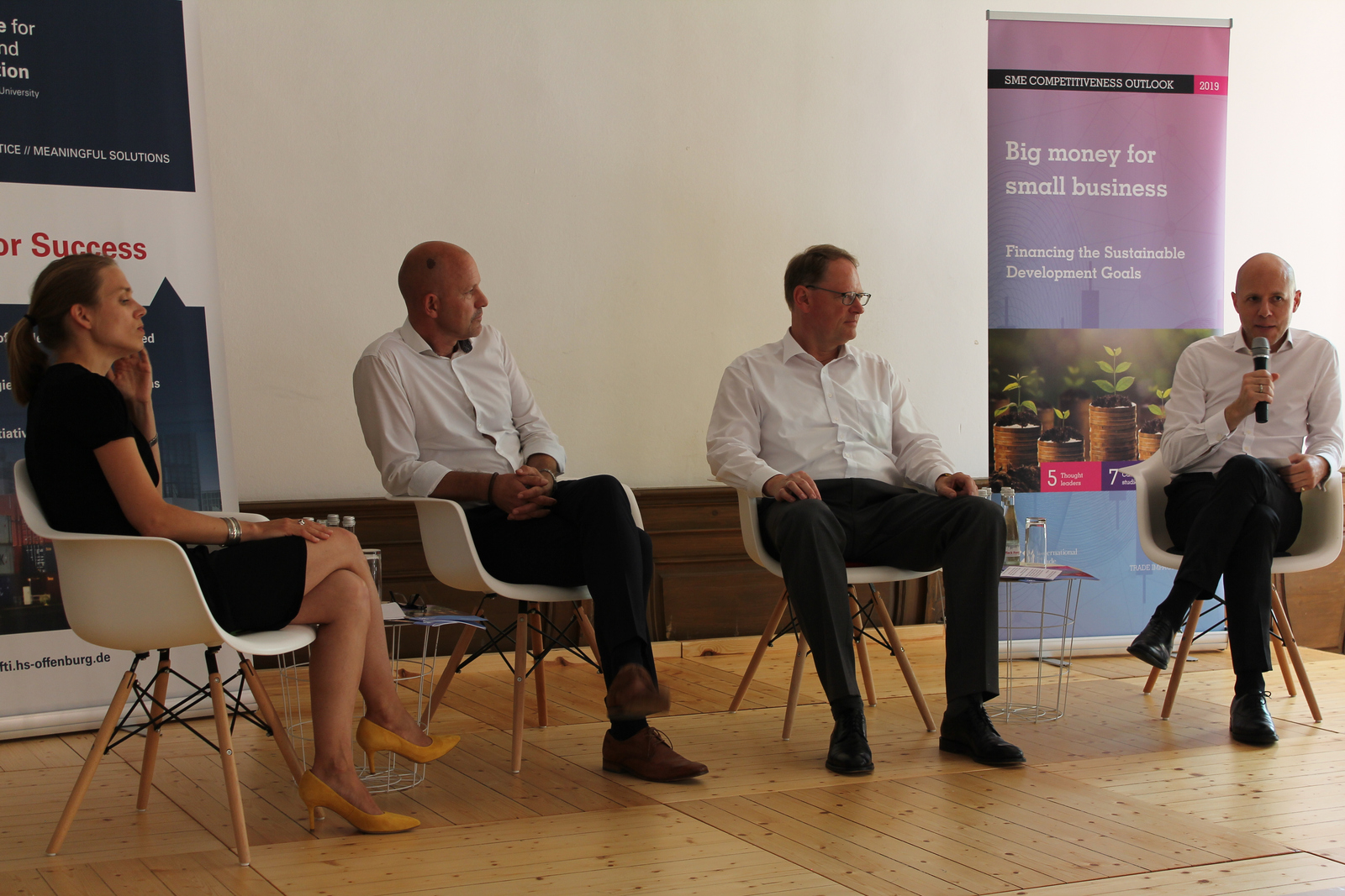 Der Campus Gengenbach der Hochschule Offenburg stand damit in einer Reihe mit den Metropolen Genf, Lyon, Mumbai und New York. Am Tag für kleinste, kleine und mittlere Unternehmen (MSME-Day) der Vereinten Nationen wurde an all diesen Orten der „SME Competitiveness Outlook 2019“ des International Trade Centers (ITC) vorgestellt. Das ITC ist eine gemeinsame Agentur von Vereinten Nationen und Welthandelsorganisation mit Sitz in Genf und unterstützt kleine Exportunternehmen in Entwicklungs- und Schwellenländern. Auf Einladung von Professor Andreas Klasen, des Leiters des „Institute for Trade and Innovation“ (IfTI) an der Hochschule Offenburg, präsentierte ITC-Projektmanagerin Dr. Julia Spies vor regionalen Industrievertretern und Studenten die Ergebnisse des Outlooks. Dabei ging es vor allem um die Frage, wie kleine und mittlere Unternehmen dazu beitragen können, die von den Vereinten Nationen festgelegten Nachhaltigkeitsziele zu erreichen. Und auch die dafür notwendigen Investitionen spielten eine große Rolle. Schließlich lautet das Motto des diesjährigen Outlooks „Big money for small business“.