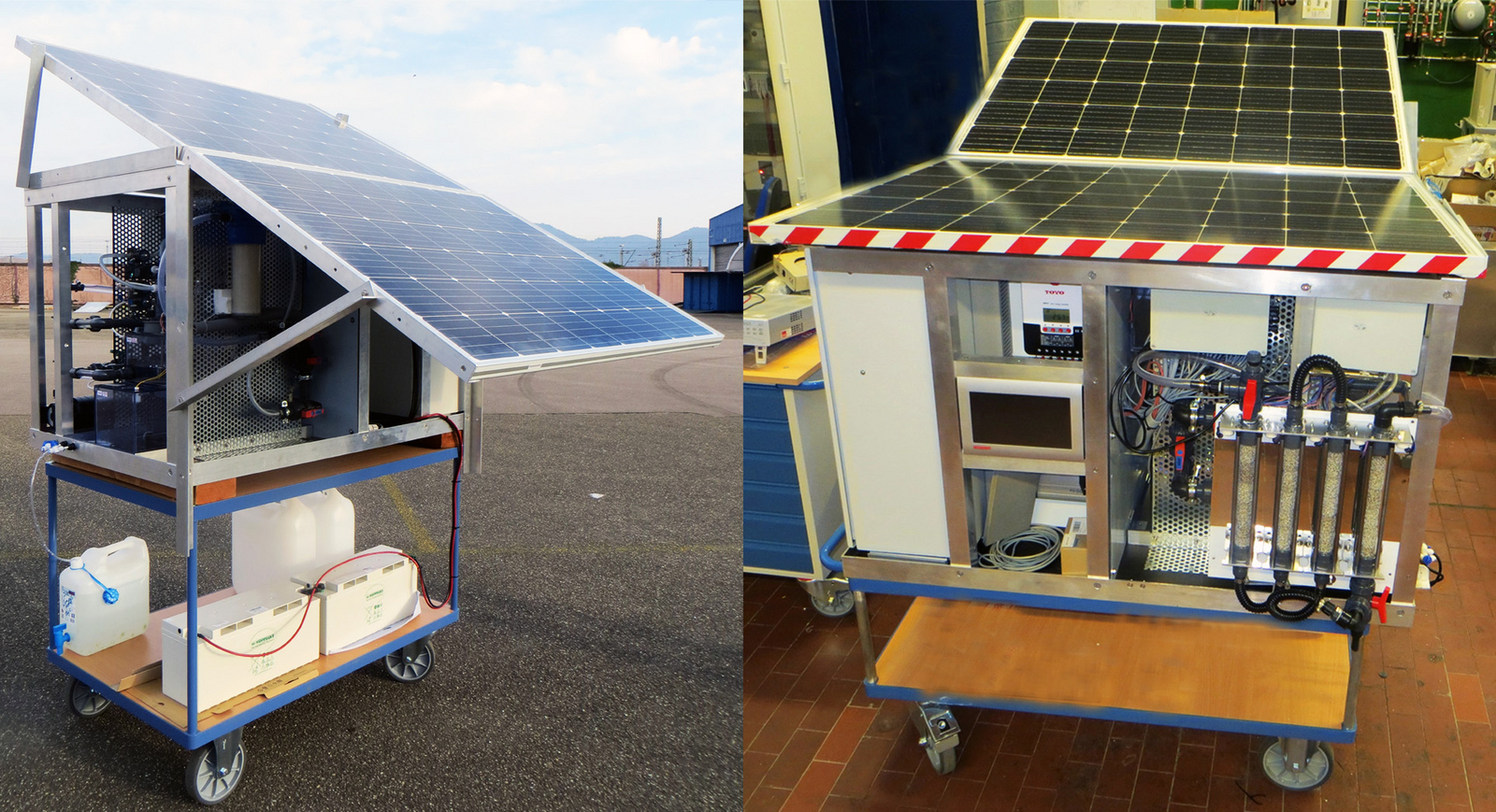 Links das Demosystem und rechts der fertige Prototyp, der den Partnern nun für intensive Freiland-Tests übergeben wurde.