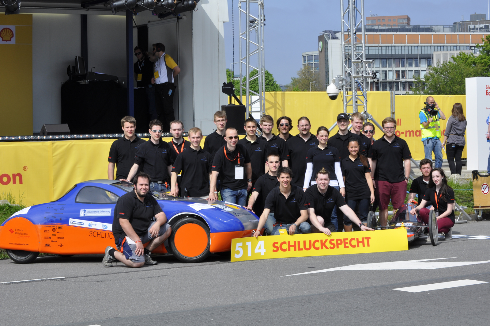 Er schluckt fast nichts und kommt trotzdem richtig weit: der „Schluckspecht“ der Hochschule Offenburg. Seit Sonntag ist der „Schluckspecht 4“ Rekordhalter in der Urban-Concepts-Klasse beim Shell-Eco-Marathon, der vom 15. bis 19. Mai in Rotterdam stattfand. Mit einem Liter Diesel (km/l) fuhr er 315,3 Kilometer weit und hat damit den bislang geltenden Rekord (286 km/l) aus dem Jahr 2008 gebrochen. Beim Shell-Eco-Marathon messen sich Studententeams aus 21 Ländern darin, mit möglichst wenig Kraftstoff möglichst weit zu fahren.