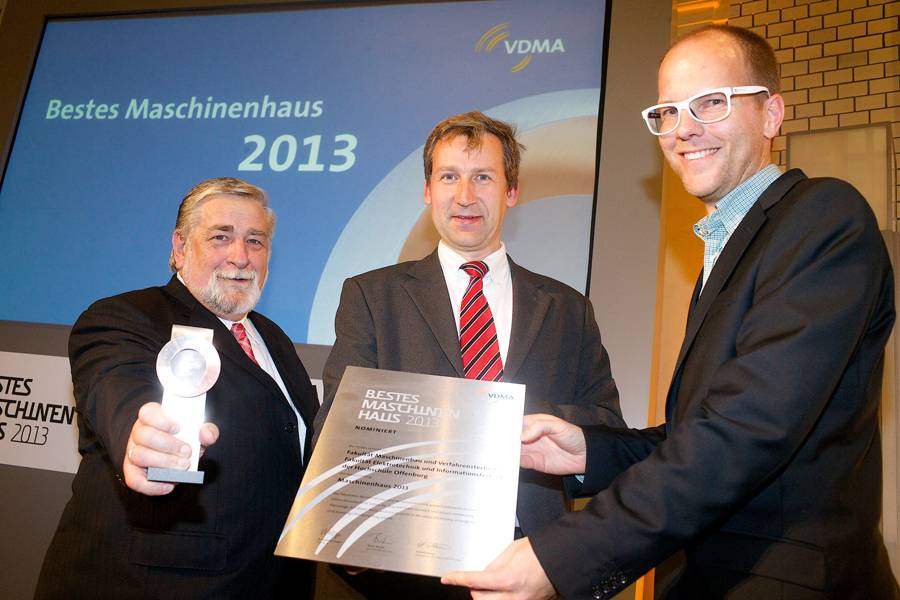 Damit zeichnet der VDMA beispielhafte Maßnahmen aus, die den hohen Studienabbrecherquoten in den Ingenieurwissenschaften entgegenwirken. Im Fokus der Ausschreibung stand die Vorstudien- und die Studieneingangsphase. Hier haben <link http: starting.hs-offenburg.de external-link-new-window external link in new>startING und das <link http: mint.hs-offenburg.de external-link-new-window external link in new>MINT-College der Hochschule Offenburg die Jury überzeugt. Die Hochschule Offenburg erhält die Auszeichnung neben der Fachhochschule Köln/Campus Gummersbach, der Hochschule Bonn-Rhein-Sieg, der Technischen Universität Darmstadt und der Universität Stuttgart. Die Auszeichnung "Bestes Maschinenhaus 2013" geht an das Karlsruher Institut für Technologie (KIT).