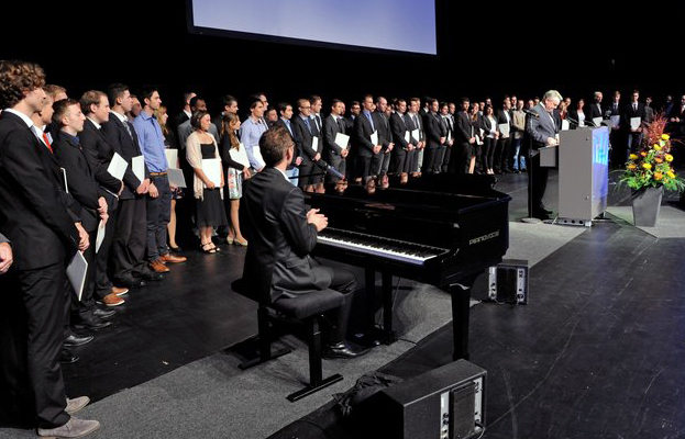 Hochschulrektor Professor Dr. Winfried Lieber hob in seiner Rede hervor, dass jene 479 Absolventinnen und Absolventen den Jubiläumsjahrgang abrunden - denn im Jahr 1964, vor 50 Jahren, wurde die damalige Staatliche Ingenieurschule Offenburg gegründet. "Per aspera ad astra - Der Weg zu den Sternen ist steinig, im übertragenen Sinn passt das natürlich auch auf einen Hochschulabschluss, den man - die Absolventen wissen wovon ich rede - nicht geschenkt bekommt. Der Weg zu einem akademischen Abschluss führt eben nicht mit scheinbarer Gesetzmäßigkeit geradlinig und stets asphaltiert; manche Schlaglöcher sind sogar so tief, dass man zu einen Umweg gezwungen wird. Umso mehr können Sie heute stolz darauf sein, ihr Ziel - für das sie gelegentlich steinige Pfade beschreiten mussten - durch Fleiß, Ausdauer, Frustrationstoleranz, Intelligenz und Durchhaltevermögen - erreicht zu haben", lobte der Rektor in seiner Rede.