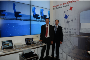 The innovative project "Speaking Seat Rail" was nominated as a finalist for the Crystal Cabin Award. The Crystal Cabin Award of the Free and Hanseatic City of Hamburg is considered the world's most important international innovation award for outstanding products and concepts in the field of aircraft cabins. In the final decision, at which the project team presented the "talking seat rail" to an international jury at the leading trade fair Aircraft Interiors Expo 2011 in Hamburg, it was not enough for the first prize, but even the nomination for the Crystal Cabin Award is regarded by experts as a high distinction and can be seen as recognition of the innovative project idea and the project results achieved so far at Offenburg University.