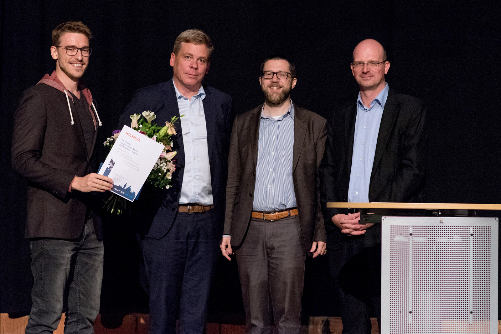 Doktorand Simon Strzeletz von der Hochschule Offenburg auf der Jahrestagung der Gesellschaft für Computer- und roboterassistierte Chirurgie (CURAC) im September 2018 mit dem Best Paper Award ausgezeichnet.