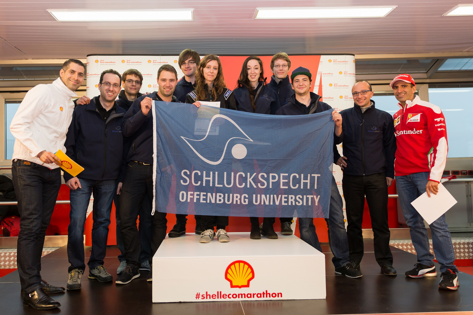 Mit der Gewissheit, beim Thema Energieeffizienz weltspitze zu sein, sind die Studierenden der Hochschule Offenburg am Donnerstag triumphierend von Maranello nach Hause gefahren. Sie konnten dort exklusiv als eines von nur fünf Teams beim Wettbewerb "Most efficient lap of Fiorano Circuit" teilnehmen, um dort den Titel "World Champion of Efficiency" von Shell und der Scuderia Ferrari aufzustellen.