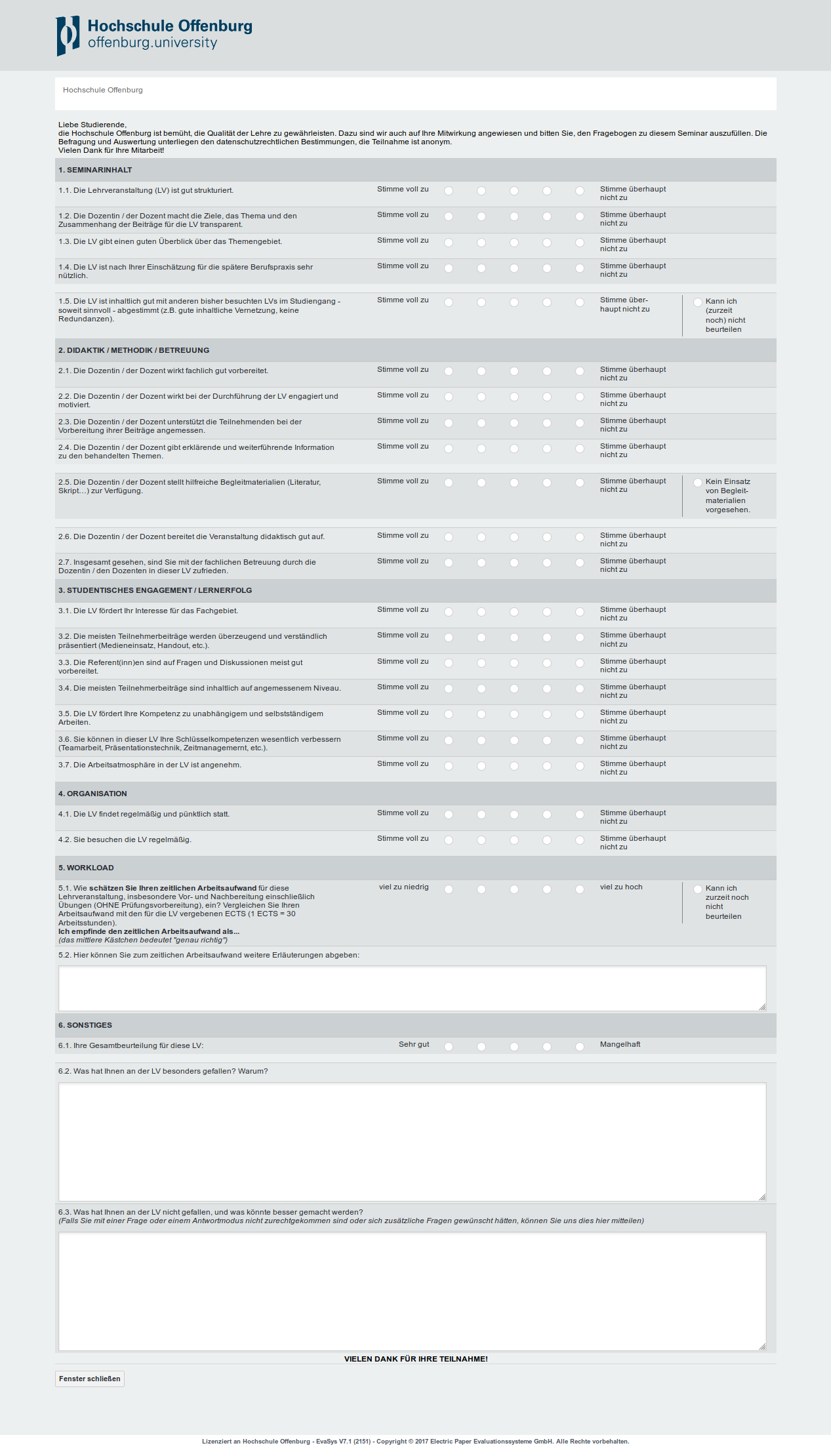 - eine Gesamtbeurteilung der Lehrveranstaltung und