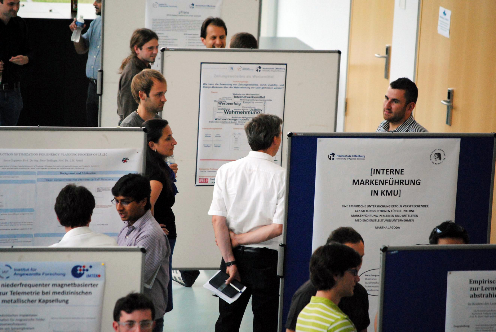 Doch nicht nur im Bereich der Energietechnik forschen die Offenburger Doktoranden. Etwa Jaqueline Griebeler-Kollmann von der Fakultät „Medien und Informationswesen“ beschäftigt sich mit Strukturinnovationen im Journalismus. Dabei stellt sie sich die Frage, welche Auswirkungen die Einführung von Newsdesks auf das journalistische Handeln haben. Die Doktorandin Martha Jagoda untersucht die interne Markenführung bei kleineren und mittleren Unternehmen (KMU). „Ich stamme hier aus der Gegend, in der es viele dieser Unternehmen gibt – daher liegt mir das Thema sehr am Herzen“, erklärte sie ihre Motivation. Sie kooperiert dabei mit der Humboldt-Universität in Berlin. Martin Schmelas ist einer der Doktoranden des Promotionskollegs „KleE“. Er möchte in seiner Arbeit Algorithmen entwickeln, die vorausschauend den Energiebedarf eines Gebäudes ermitteln. Auch das Thema RFID (Radio-Frequency Identification) spielt in einigen Arbeiten eine Rolle. Mittels dieser Technik können automatisch Gegenstände und Lebewesen identifiziert und Daten übertragen werden.