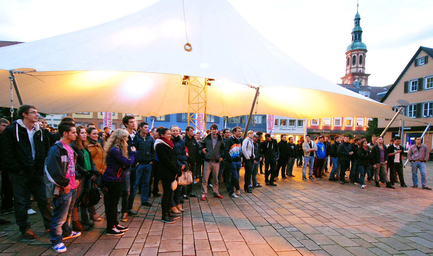 Erstmals hatte der Erstsemesterempfang am Donnerstag, 4. Oktober, auf dem Marktplatz stattgefunden - um den Studierenden ihre Eingewöhnungsphase in der Stadt zu erleichtern und den Offenburgern zu zeigen, wie viele junge Menschen den Weg an den Oberrhein gefunden haben, um hier zu studieren. Eingeladen hatten die Stadt Offenburg, die citypartner und die Hochschule. Moderator Markus Knoll führte durch den Abend.