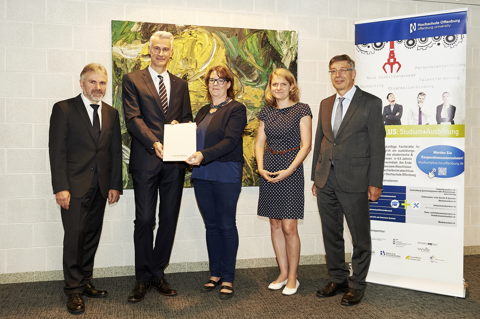 In nur 4,5 Jahren wird im ausbildungsintegrierten StudiumPLUS: Studium+Ausbildung ein Bachelorstudium mit einer Berufsausbildung der Industrie- und Handelskammer (IHK) kombiniert. „Auch die zukünftigen Studierenden erkennen das Potenzial“, weiß Eva Hildenbrand, Koordinatorin StudiumPLUS der Hochschule Offenburg: „Weil sie frühzeitig in Unternehmen eingebunden werden, erlangen sie praktische und persönlichkeitsfördernde Kompetenzen, die ihre Chancen erheblich steigern, nach Ausbildung und Studium übernommen zu werden.“