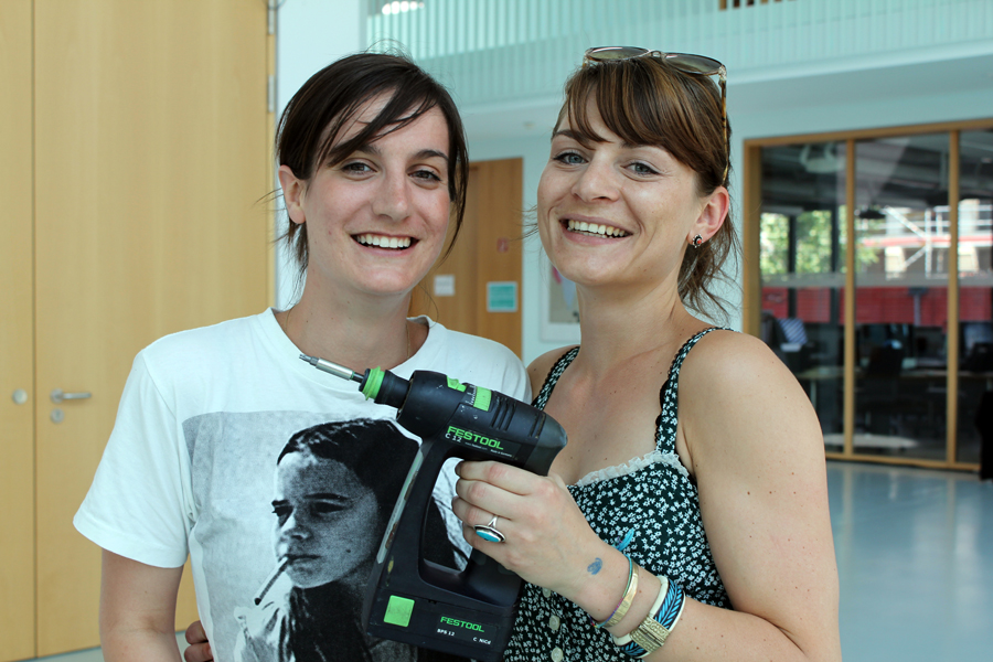 Den ganzen Tag vor der Werkschau haben sie in der Küche gestanden, Chili con Carne gerührt, Schokoladenkuchen gebacken, Salat gewaschen und Saucen gemixt. Die Studentinnen Anna Bartel und Jenny Fuchs sorgen bei der Sommer-Werkschau der Hochschule Offenburg dafür, dass die kreativen Köpfe der Hochschule Offenburg immer gut mit Nahrung versorgt sind. "Das Einzige, was wir nicht selbst gemacht haben, ist das Brot", berichten sie schmunzelnd. Auf der Werkschau, bei der die Studierenden der Fakultät Medien und Informationswesen ihre Projekt- und Abschlussarbeiten präsentieren, ist so ziemlich alles selbstgemacht.