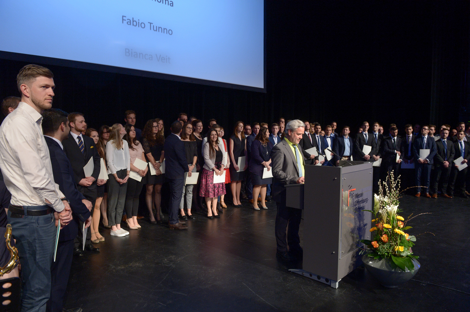 Für den Verein der Freunde und Förderer der Hochschule Offenburg gratulierte der Vorsitzende Helmut Schareck den Absolventinnen und Absolventen. "Viele Freunde und Förderer sowie private Stifter unterstützen unsere Hochschule", erklärte er. Für die Studierenden stellen sie finanzielle Mittel, Lehrmittel, Einrichtungen und Informationen zur Verfügung. Schareck warb darum, eine Mitgliedschaft im Verein einzugehen. Mehr als 2500 Mitglieder und mehr als 100 Firmen und Verbände seien bereits Teil dieses Netzwerks.