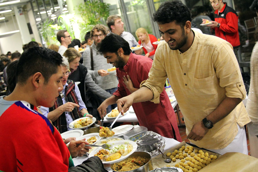 Die Veranstaltungsreihe "Advent der Migranten" im Amt für Öffentliche Ordnung in Freiburg präsentiert Seminararbeiten von CME-Studierenden (Communication and Media Engineering) aus dem Kurs "Intercultural Media Design" unter Leitung von Professor Daniel Fetzner. Die Eröffnung der Ausstellung in Form eines interkulturellen Fests war am Freitag, 19. Dezember, im Amt für Öffentliche Ordnung Freiburg am Johanniskirchplatz/Basler Straße 2.