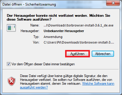 Nach dem Downloaden der Setup, die Installation mit mit einem Doppelklick auf die .exe starten und mit “Ausführen” bestätigen.