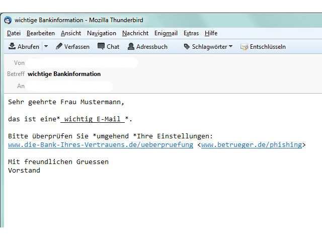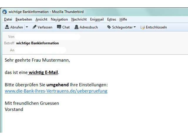 Auch andere Informationen werden auf diese Art "gephished". Kontaktieren Sie bei Verdacht immer den vermeintlichen Absender der E-Mail; auch dieser hat ein großes Interesse, dass kein Schaden entsteht.