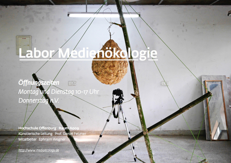 Ambient Technologies wie Smartphones und VR-Headsets schaffen neuartige Umweltbezüge zwischen Mensch, Natur und Technik. In dem Labor Medienökologie (LME) der Hochschule Offenburg untersuchen wir diese Gefügebildungen in Theorie und Praxis in Form von Textarbeit und medialen Versuchsaufbauten. Die Studierenden entwerfen und realisieren Experimentalsysteme, die ihnen Handlungsmöglichkeiten im Kontext einer künstlerischen Forschungspraxis aufzeigen.