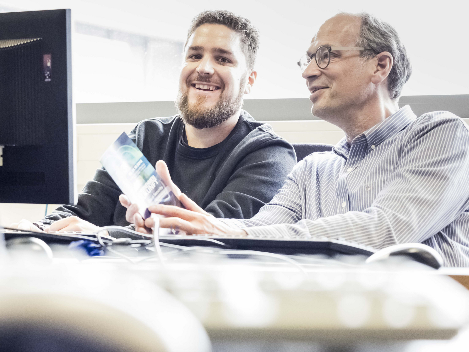 "Wir vermitteln vertiefende Kenntnisse im Bereich der IT-Sicherheit und der organisatorischen Unternehmenssicherheit": ENITS-Student mit Hochschullehrer Prof. Dirk Westhoff