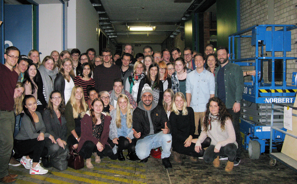 Die Studierenden mit Rapper MoTrip im Backstage-Bereich.