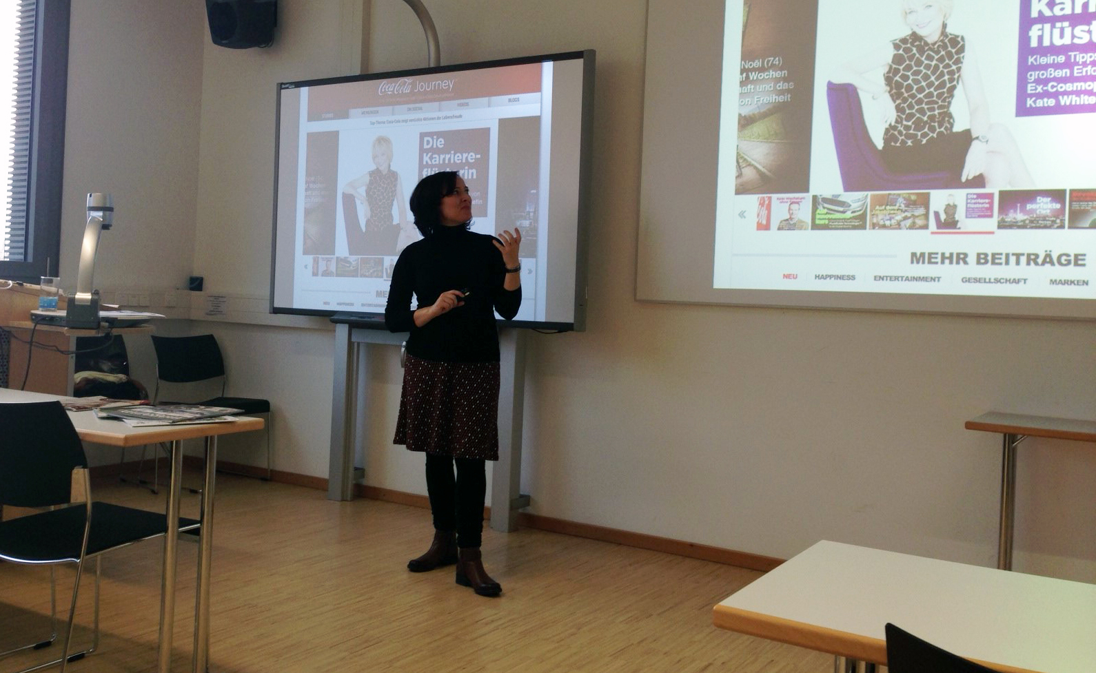 Petra Keller hatte am Dienstag, 3. Dezember, zum zweiten Mal die Einladung der Studiendekanin des Bachelorstudienganges Medien und Informationswesen, Professorin Dr. Ute Rohbock, angenommen. In ihrem Vortrag zeigte Petra Keller den Studierenden auf, wie sie im Rahmen von Corporate Publishing bzw. Unternehmenskommunikation zu einer Content-Marketingstrategie gelangen und diese praktisch umsetzen können. Die Auseinandersetzung mit diesen Themen wurde durch zahlreiche praktische Beispiele veranschaulicht und Begriffe wie Cross-Media aus der Sicht der Expertin für Corporate Publishing wurden ausführlich erläutert.