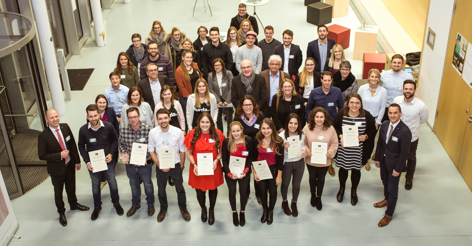 Mit dem Preis für die originellste Präsentation wurden Dennis Wörther, Pascal Fenkart und Stefan Knörr ausgezeichnet. Das Team hatte ein Konzept für ein individualisierbares Erklärvideo entwickelt und diese Idee in Form einer Live-Animation vorgestellt. Des Weiteren erhielten Marie Lefferts, Leonie Hiemer und Lisa Kardel für die Entwicklung von kreativen Social-Media-Formaten im Rundfunkbereich den Preis für das beste Konzept. Über den Preis für die innovativste Idee konnten sich Sina Meier, Ayhan Altan, Laura-Ann Zunker und Joanna Hahn freuen. Die Studentinnen hatten mit einem Partnerunternehmen einen interaktiven Raum der Zukunft entworfen, in dem das unternehmerische Leistungsangebot ansprechend, hochwertig und verständlich abgebildet werden kann.