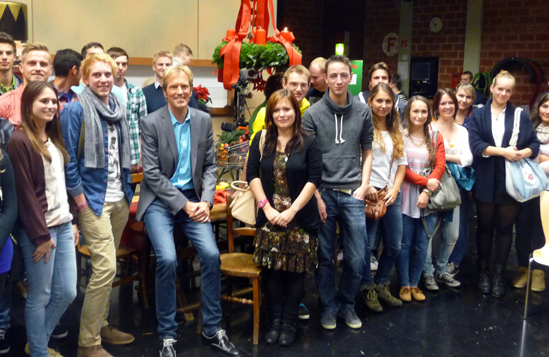 Die Aufzeichnung der Sendung "Der SonntagAbend mit Markus Brock" mit dem Thema "Winterzauber im Südwesten von A-Z" stand im Mittelpunkt der Sendung, bei der unter anderen der Wetterexperte Sven Plöger und die Wintersportlegende Georg Thoma zu Gast waren. "Ich freue mich immer wieder, wenn diese sympathischen jungen Leute der Hochschule Offenburg in meiner Sendung sind", so Moderator Markus Brock. Er zeigte sich interessiert, zukünftig im Rahmen eines Lehrauftrages bei Medien und Informationswesen mitzuwirken und dadurch den Studierenden einen vertieften Einblick in die Geheimnisse der Moderation zu vermitteln.