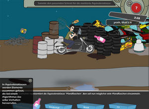 In dem Online-Lernspiel “Software Engineering in the Future“ werden vielfältige Methoden des Software Engineering trainiert. Alle Übungen sind in eine Story eingebettet, bei der die Hauptperson Ben durchs All zu einem Festival reist und auf diesem Weg Aufgaben lösen muss. Unterschiedliche Lokationen im All repräsentieren verschiedene Themenkomplexe für Ben bzw. den Spieler, z.B. UML, Entity-Relationship Modellierung, Qualitätsmanagement oder grafische Benutzerschnittstellen.
