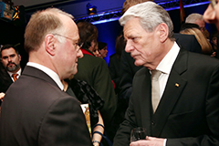 Anlässlich des Besuchs von Bundespräsident Joachim Gauck am 17. Dezember ergab sich im Nachgang zur Aufzeichnung der Sendung "Weihnachten mit dem Bundespräsidenten" die Gelegenheit zu einem kurzen Gespräch, in dem Rektor Prof. Dr. Lieber die Hochschule vorstellen konnte.