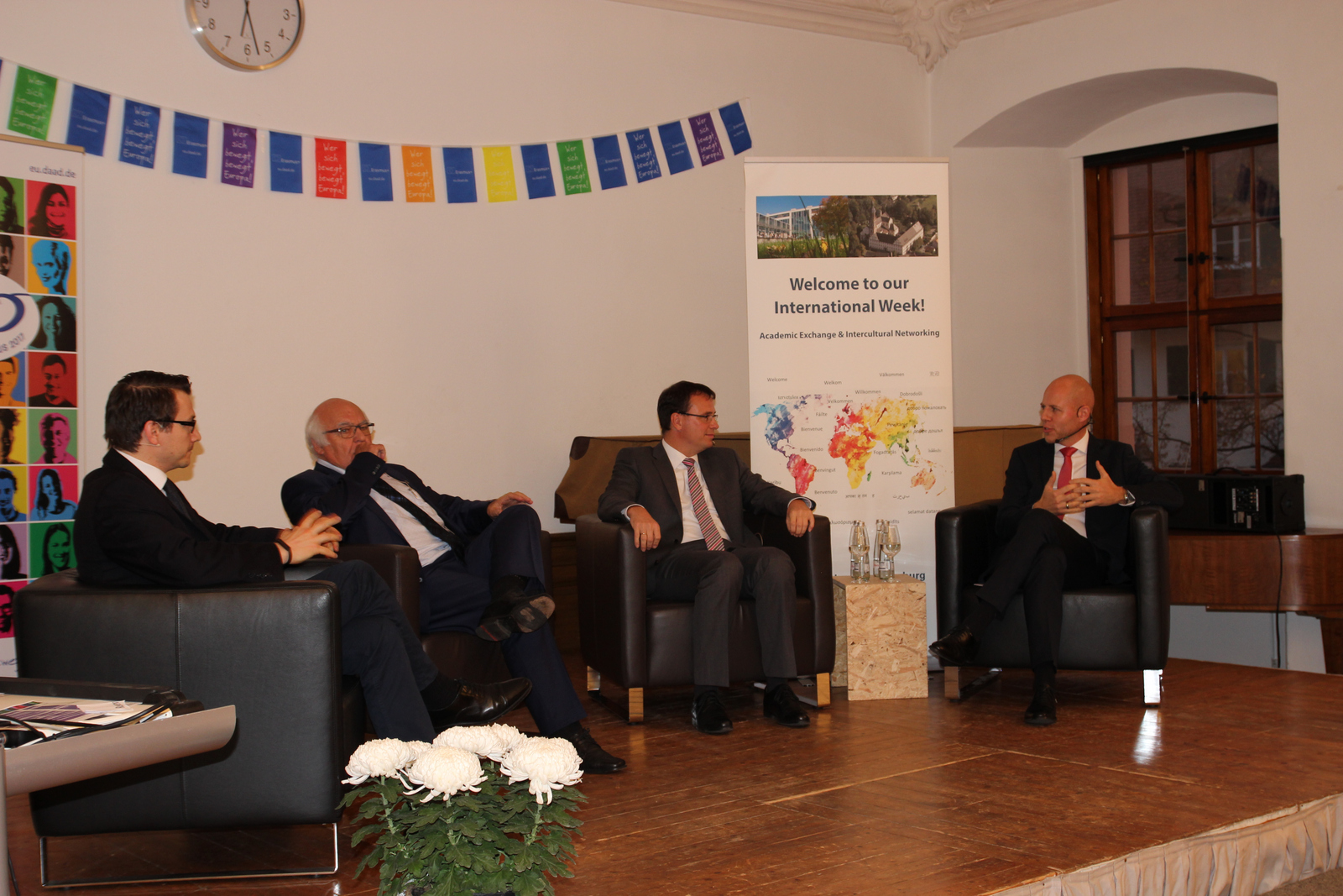 Der Tag wurde abgerundet durch eine spannende Podiumsdiskussion zum Thema „Erasmus und die europäische Bildungspolitik und ihre Bedeutung für die Wirtschaftsregion Ortenau“ mit Staatssekretär Volker Schebesta, MdL, Dr.-Ing. E.h. Martin Herrenknecht sowie Dr. Henning Meyer von der Universität Cambridge. Bei der von Prof. Andreas Klasen moderierten Veranstaltung diskutierten die Redner mit Hochschulangehörigen sowie zahlreichen Gästen aus Politik und Wirtschaft insbesondere über die große Bedeutung von Auslandsaufenthalten in einer globalisierten Welt.