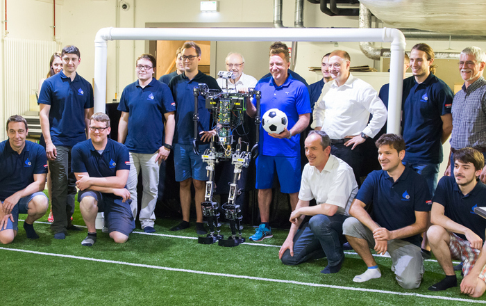Martin Wagner, Ex-Nationalspieler, Deutscher Meister und DFB-Pokalsieger, hat den humanoiden Roboter Sweaty auf die Probe gestellt.