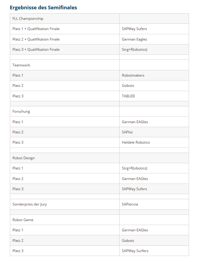 Semifinale Südwest: Platz 2 FLL Teamwork sowie Platz 2 FLL Robot-Game